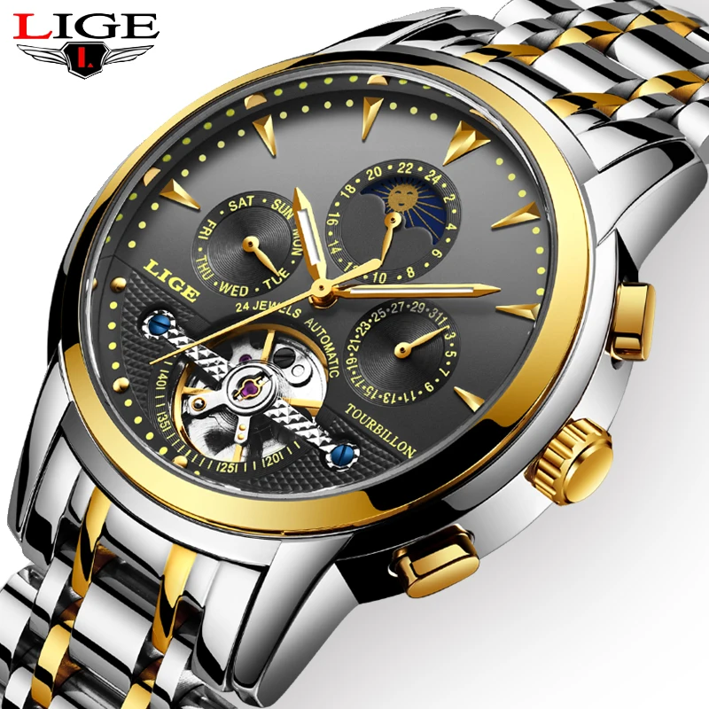 Big Deal LIGE Mens Watches Top Luxury Brand Automatic Mechanical Watch Mens Business Full Steel Waterproof S
