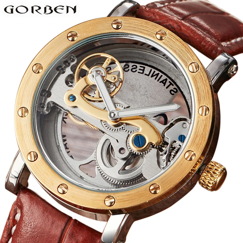 Big Deal Transparent Men Automatic Watch Luxury Brand Leather Skeleton Mechanical Wristwatch For Men Sports